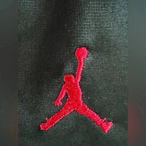 Jordan | Classic Jumpman baby boys athletic long pants. Size: 6/9. Colors: black & red. Traditional Jordan polyester athletic style pants. 100% polyester. Stretchy elastic waist with red Jumpman logo embroidered on left hip/side. Jumpman logo tag on lower right leg. Cute infant comfy pants. Like new condition.