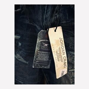 Brand new with tags, Jordan Craig Legacy Edition boys jeans in size 10, color “Death Valley.” These feature a vintage-inspired distressed wash with whiskering and fading, giving them a stylish worn-in look. Crafted from 99% cotton and 1% elastane for comfort and stretch, complete with five pockets, button closure, and belt loops. Wash instructions are included on the tag.