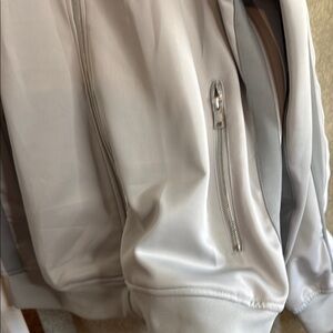 Stay stylish and comfortable with this sleek gray track jacket. Perfect for casual outings or workouts.