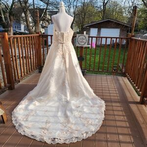 Jordan Elegant Cream Embroidered Strappy Bride Floral Wedding Bridal Gown M