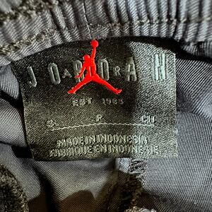 Lightweight cotton/nylon blend with elastic waistband, drawstring, cargo pocket, and tonal Jumpman embroidery. Perfect for workouts or streetwear.