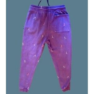 This is a pair of Nike Jordan holiday allover print fleece jogger sweatpants in size 30" waist, 26" inseam color cherry wood. In very good condition with brand tag, cleaning tag and one on outer leg with Jordan graphic/signature, lots of good use left in them. These activewear cherry wood/burgundy colored sweats were made in Indonesia of Cotton fleece MPN 9390. They are mens sweats with straight cuffed leg, 2 front pockets, one rear pocket and drawstring tie. These sports themed sweats have Air Jordan graphics front and back. All measurements are in template pictures 3-4 along with pictures following & all were taken with sweats laying flat and in inches. There is a big difference in size charts on couple of numbers so best way to see if they would fit would be to take a similar item from your closet and using my template measure same way and compare. These would also be great for a collection of Jordan or for any fan of Jordan or basketball or self. This is bargain price when compared