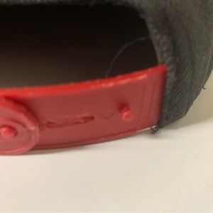 Hat is slightly damaged on the snap back. Missing a couple of snaps and slightly cracked. See pictures.