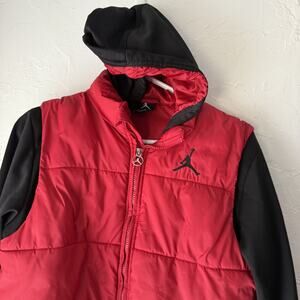 Jordan Hooded Puffer Jacket Boys Large 12-13 Years Red Black Jumpman Logo Youth