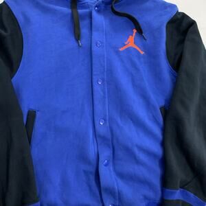 Jordan Hoodie Jacket Mens L Blue Black Jumpman Full Zip Snap Varsity Athletic