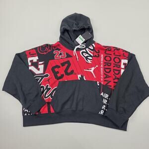 Jordan Hoodie Womens Extra Large Black Red Loose Fit Air 23 Graphic Pullover NBA