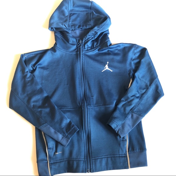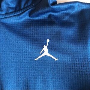 Blue hooded zip front jacket with pockets and reflective strips (have some cracking) drifit #jordan #hoodie