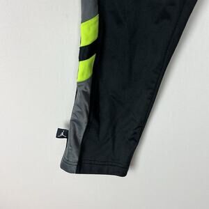 Gently Used Jordan Joggers. These are a boys medium (5-6). Mainly black with grey and green accents. Green Jordan jumpman logo. Two front pockets.