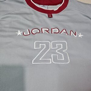 Jordan Jump Man 23 Y2K Gray With Red Stitched Sleeveless Jersey Mens Size XL shows signs of kormal wear sold as is see pictures for reference and measurements