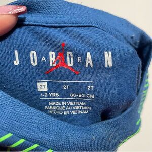 Gently worn boy’s size 2T Jordan jump man graphic short sleeve athletic t-shirt. Please review all photos for any signs of wear-pictured as is. Disclaimer: Any items with any wear/staining has not been treated, and unsure of ability to remove/treat condition. Comes from a smoke free home, bundle with other items to save & minimize shipping cost.