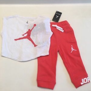 Your fashion-forward girl will get the comfort she needs and the style she craves in the Jordan Oversize T-Shirt and Leggings Set. Perfect for active girls this set boast a loose fit for a modern look. The Jordan jumpman logo front and center also adds authentic hoop style she'll love. Soft stretchy crop leggings compliment that look, with subtle Jordan Branding , a sleek and drawstring waist so these cuties stay put.