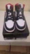 Stylish Jordan sneakers for kids. Features black, white, and red design. Comfortable and trendy.