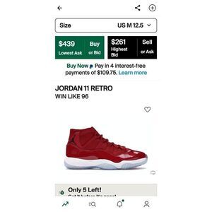 Jordan Men's 11 Retro Win Like 96 Red Shoes Size 10.5. 603