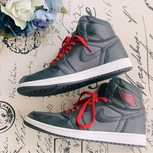 Jordan Men’s Air 1 Retro High OG 555088-060 in Black Satin / Gym Red Size 10
