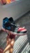 Bold Jordan sneakers with striking black, red, and blue design. Perfect for casual wear.