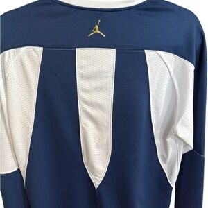 Stay stylish and comfortable with the Jordan Men's long sleeve. Featuring a classic blue and white design, this shirt is perfect for any casual occasion. The iconic Jordan logo adds a touch of sporty elegance.