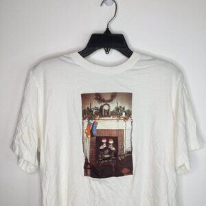 Vintage Jordan T-Shirt Men’s L White Christmas Fireplace Graphic Tee Retro Streetwear