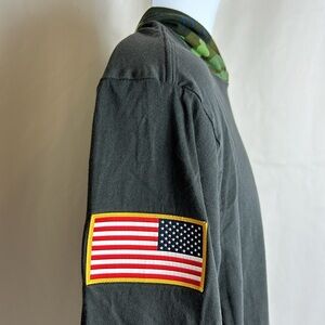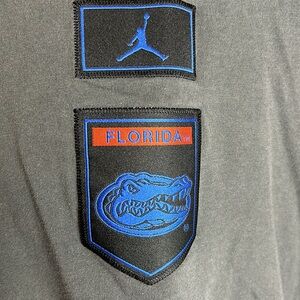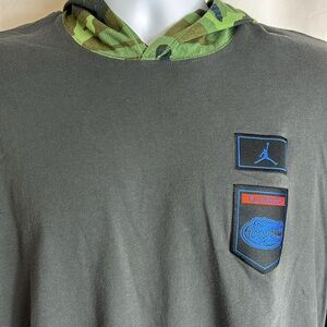 Jordan, men’s size medium, dark gray, long sleeves, cotton, green camouflage hood, Florida Gators patch on front, Jordan logo patch on front, American flag on sleeve, excellent preowned condition, see photos