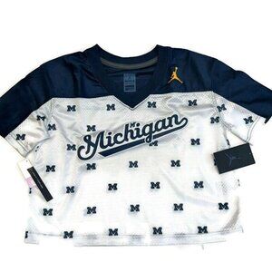 Jordan Michigan Wolverines Football Jersey Womens Size M Cropped Shirt Top White