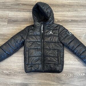 Sleek black jacket with a hood. Features the classic Jordan emblem.