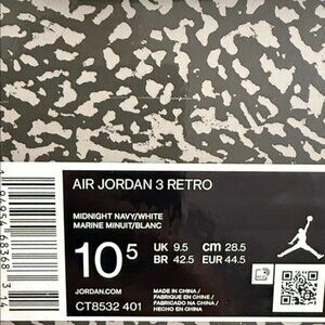 Jordan Midnight Navy and White Air Jordan 3 Retro