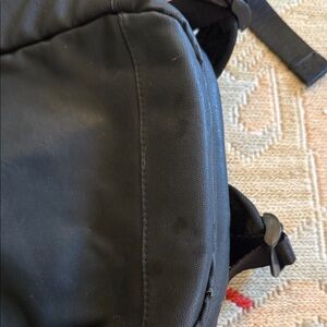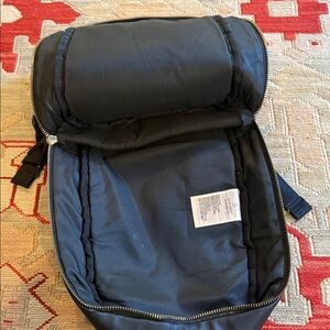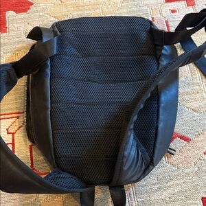 Sleek Jordan mini backpack with gold logo. Ideal for daily use. Two carrying compartments, adjustable straps. Faux leather material good used condition see photos for any flaws.