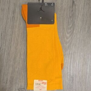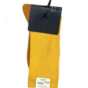 Elevate your everyday style with these Jordan casual socks in a striking gold hue. Crafted from a comfortable knit material, these crew-length socks feature a ribbed texture and elastic top band for a secure fit. Perfect for adding a touch of luxury to your casual wardrobe.