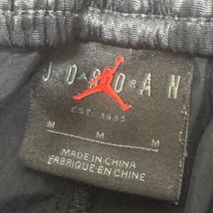 Keywords: Jordan, nylon pants, joggers, womens activewear, elastic waist pants, black joggers, athletic pants, workout pants, casual pants, Jumpman logo, cuffed ankle pants, medium size, sportswear, training pants