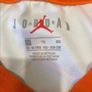 This vibrant Jordan long sleeve tee showcases a striking pink body contrasted by black sleeves, featuring a bold '23' graphic on the front. The sporty design is perfect for making a statement while ensuring comfort and style.
