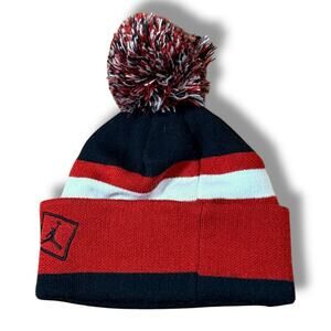 Jordan Pom Beanie Unisex Red White Black Striped Jumpman Hat Toque OSFM