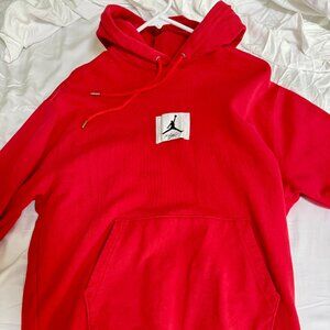 Vibrant red hoodie. Features iconic black logo. Comfortable and stylish.