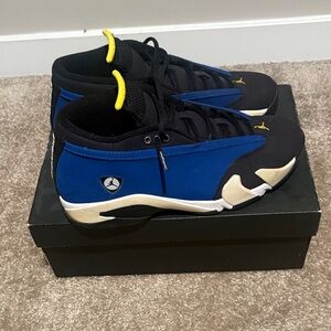 Jordan Retro 14 Laney Low Men's Black and Blue Sneakers with Yellow Accents