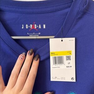 Vibrant royal blue Jordan tee with striking aqua 'Flight' graphic. Ideal for everyday style.