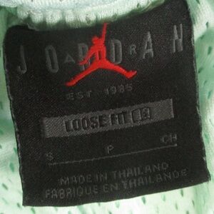 These Jordan athletic shorts for men in small feature a mint foam and sand drift color scheme with a diamond pattern. Designed with a loose fit, they offer comfort and style, ideal for workouts or casual wear. Please check measurements below.