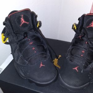 Black swede/ Varsity Red Jordans worn once and there special to the Jordan Fans so respect the Six Rings