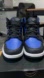 Stylish Jordan sneakers. Black and blue design. Comfortable fit. Iconic brand.