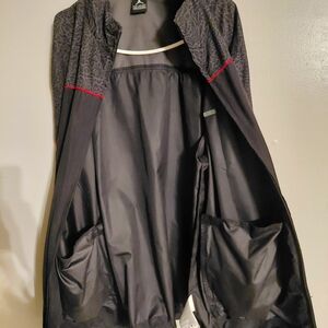 Sleek Jordan jacket with bold red details. Perfect for casual wear. early 2000's design. great condition. AF1/Jordan logos