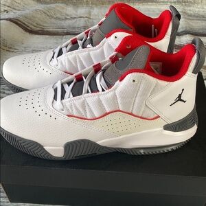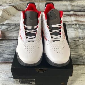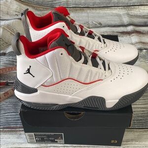 Jordan Stay Royal (GS) White, Red & Grey Sneakers with Mid-Top Design Sz 6.5Y