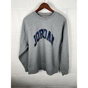 Elevate your outdoor look with this stylish and comfortable Jordan sweater. The gray pullover features a solid pattern and crew neck with a plaid spell out design and embroidered logo accents. Made of high-quality polyester, spandex, and cotton fleece, this sweatshirt is perfect for all seasons. The long sleeves and regular fit make it suitable for walking, basketball, or any outdoor sports activities.
