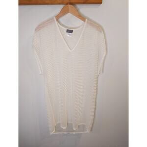 Jordan Taylor Knit Swim Coverup Ivory Cream V-Neck Size L Textured Beach