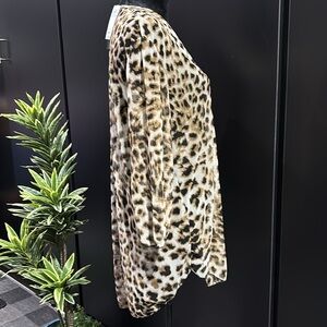 Jordan Taylor Leopard Print V-neck, long sleeve, sheer high low top/coverup +