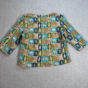 Jordan Vintage 3/4 Sleeve Blouse Womens Large Button Back Square Neck Green/Blue