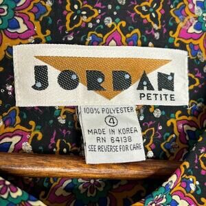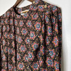Jordan Vintage Black Floral Scrunch Waist Long Sleeve Blouse Size 4 2