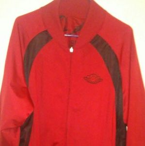A little worn but hardly noticable. A light but warm coat. Red and black both sides as shown in pictures.