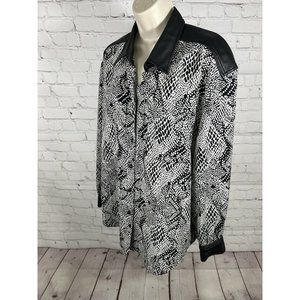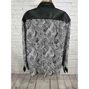 Jordan Woman Black White Vegan Leather Collar/Sleeve Cuffs/Buttons Button Up 16W