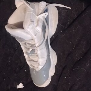 Elevate your style with these Jordan athletic shoes. Sleek white and gray design. Perfect for performance and comfort.