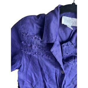 Jordan Women's Button Up Embroidered Blouse 100% Linen Purple Size Small