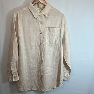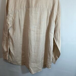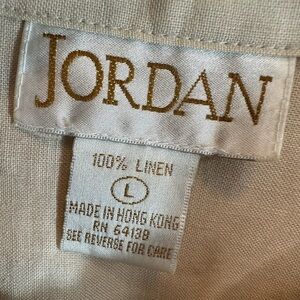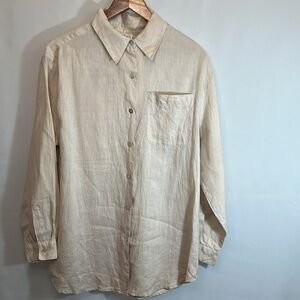 Jordan Womens Size L Vintage 100% Linen Shirt Button Up Long Sleeves Pocket Tan