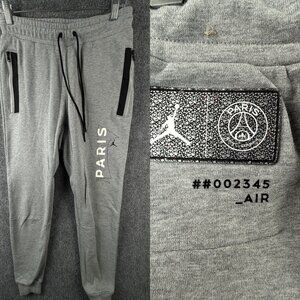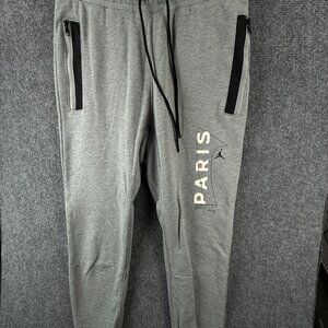 Jordan X Paris Saint-germain Sweatpants Gray Small Jogger Drawstring Zip Pocket