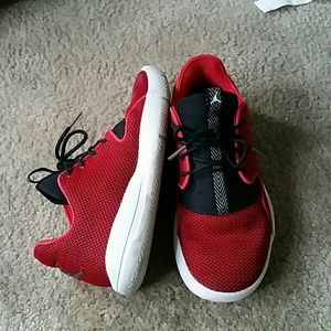 Red and black jordan eclipse,the outline shines when a flash light hits it.